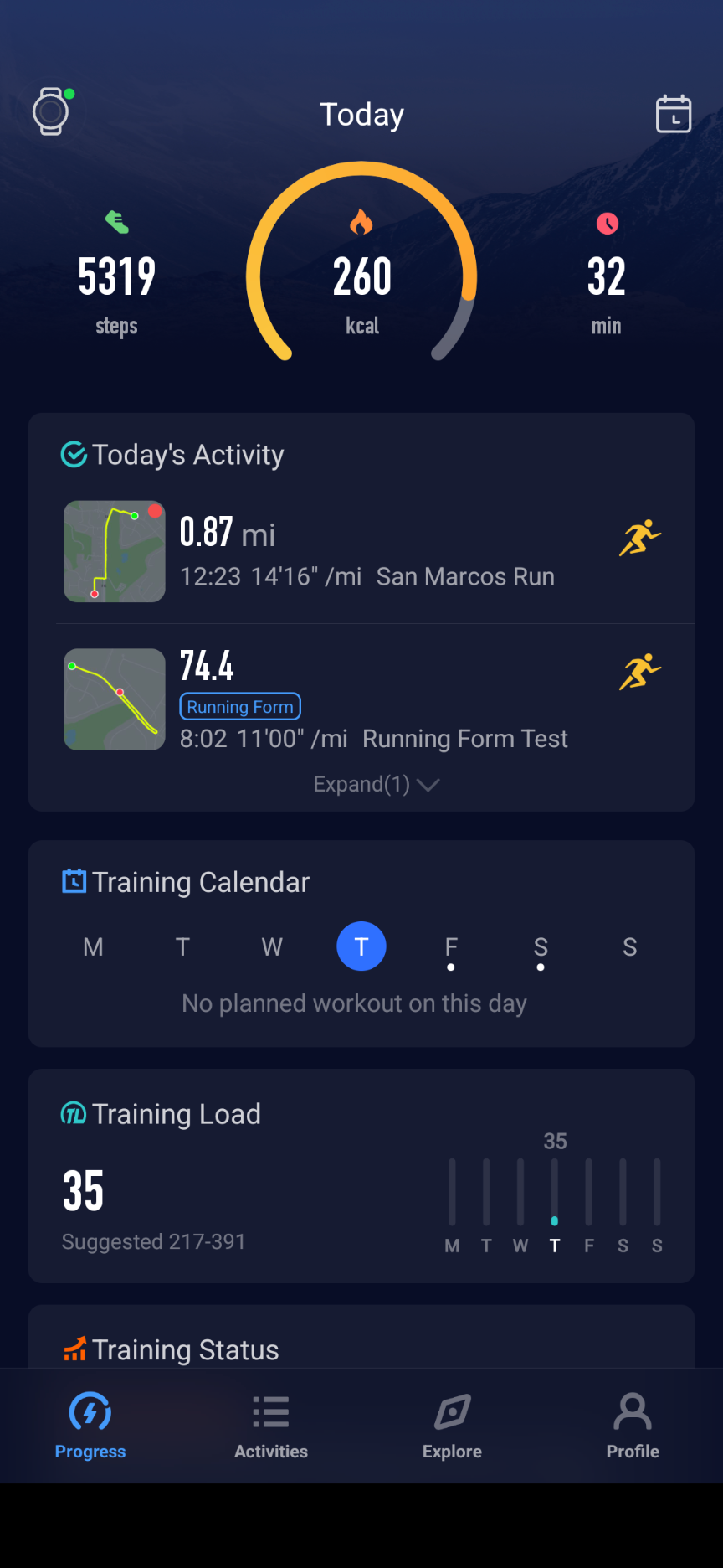 I followed the test up with a cooldown run of just under a mile. I spent a total of 32min running today. Short, but intense. Today’s run had felt like moderate exertion, but the heat was definitely a factor, even though I ran at dusk. I lost a ton of water through sweat. This is just how it will be for the next month or two before things hopefully cool off enough that I won’t need to run my shirt through a wringer.