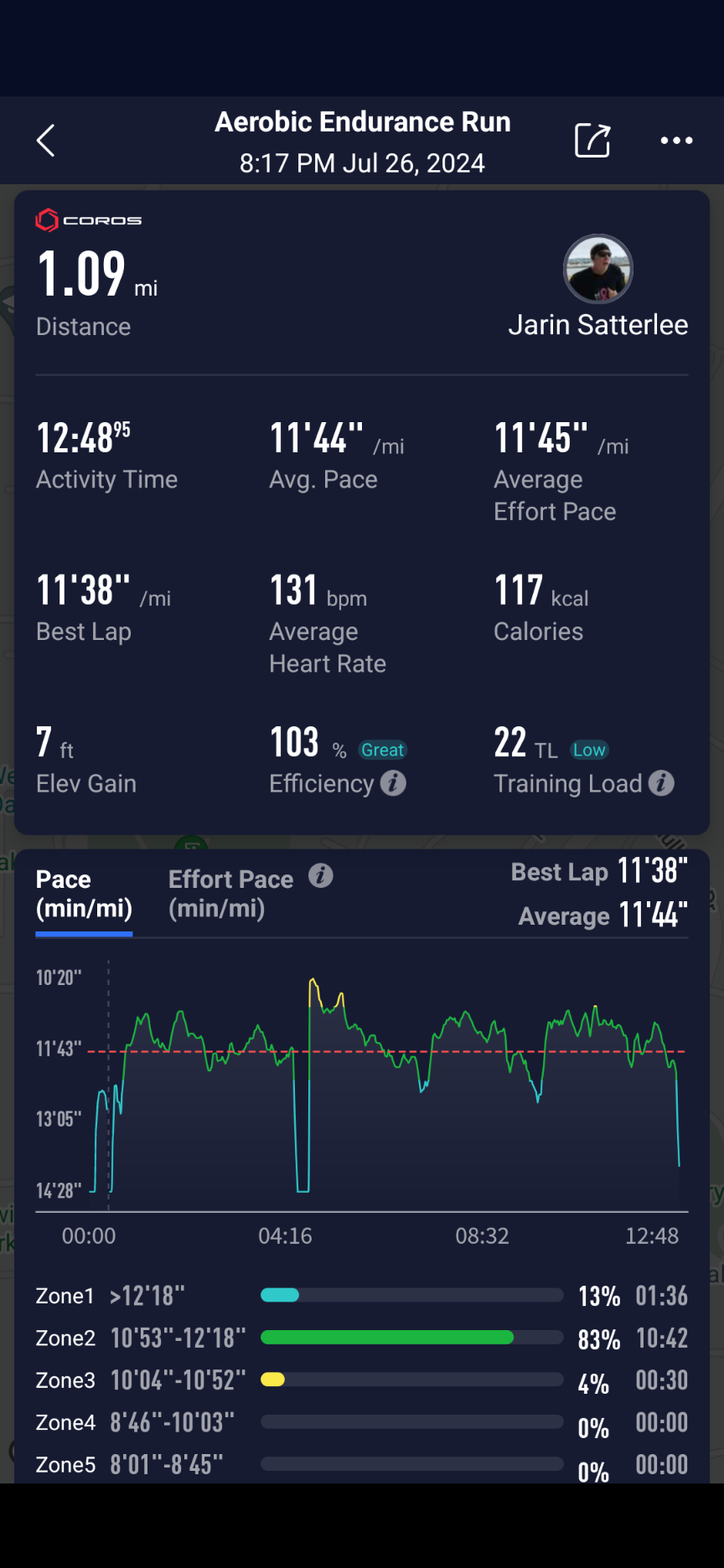 Today’s running workout was a 1 mile warmup followed by a 40 min zone 2 (aerobic endurance) run. Unfortunately I ran out of daylight and was only have to complete 13mins of the 40min workout.