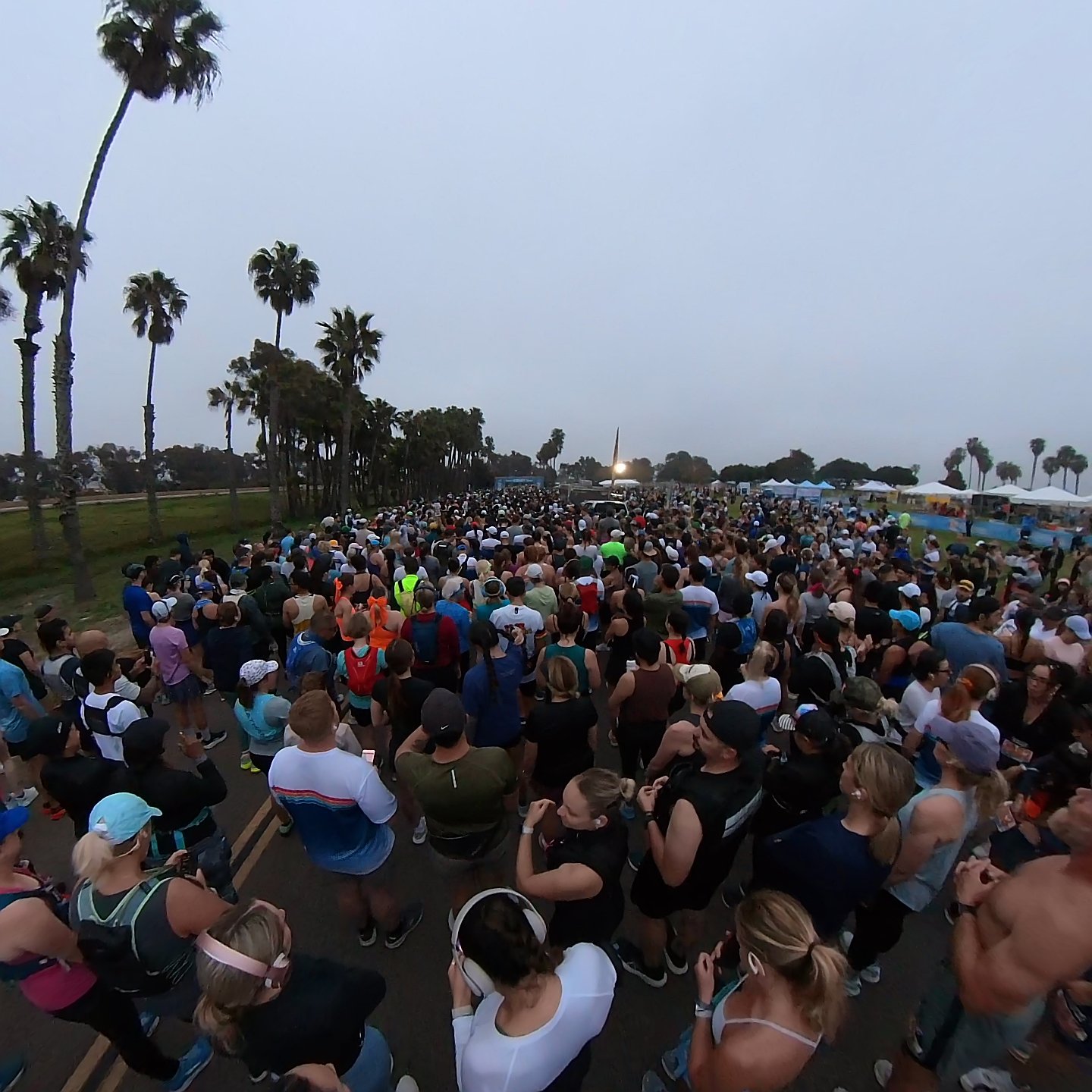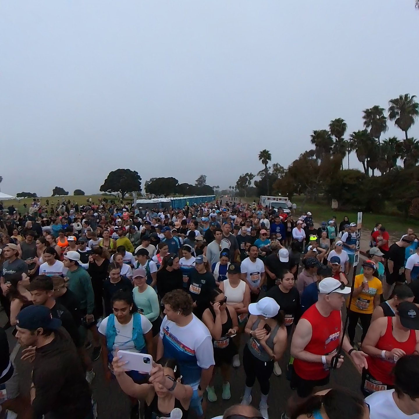 This was by far the largest race I have been in. So many people. I didn’t even consider that it might take a while to get to the start line and have my race officially start. Turns out, it took 22 minutes from the first runner’s start until I started. In the photo below, you will see a blue banner off in the distance. That is the start line.